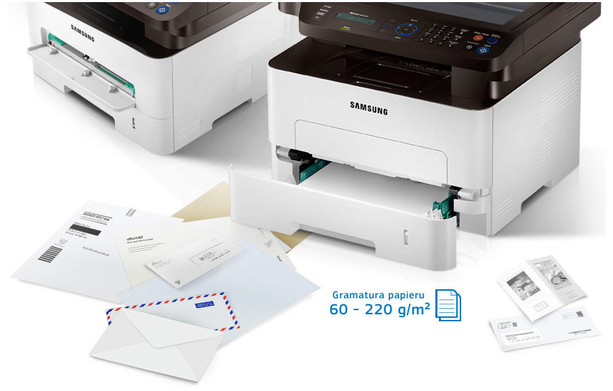Drukarka Samsung Xpress M2675FN jest odpowiedzią na wszystkie twoje potrzeby w zakresie drukowania. To niewielkie, ale wszechstronne urządzenie może drukować na nośnikach o gramaturze aż do 220 g/m2, w tym na papierze, etykietach, kartkach okolicznościowych, kopertach oraz folii do rzutnika. Użytkownik może z łatwością wybrać rodzaj papieru z podajnika wielofunkcyjnego, co sprawia, że urządzenie jest nie tylko wygodne w obsłudze, ale również wszechstronne.