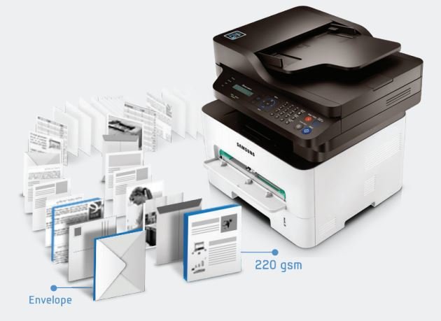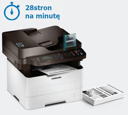 Drukarki Xpress M2885FW zapewniają prędkość drukowania do 28 stron A4 na minutę. Te urządzenia wielofunkcyjne mogą obsługiwać duże, złożone zadania drukowania dzięki zaawansowanemu procesorowi ARM® Cortex™-A5 600 MHz firmy Samsung i 128 MB pamięci. Wbudowany procesor obrazu umożliwia przetwarzanie skanów.Zróżnicowane opcje drukowania profesjonalnych dokumentów