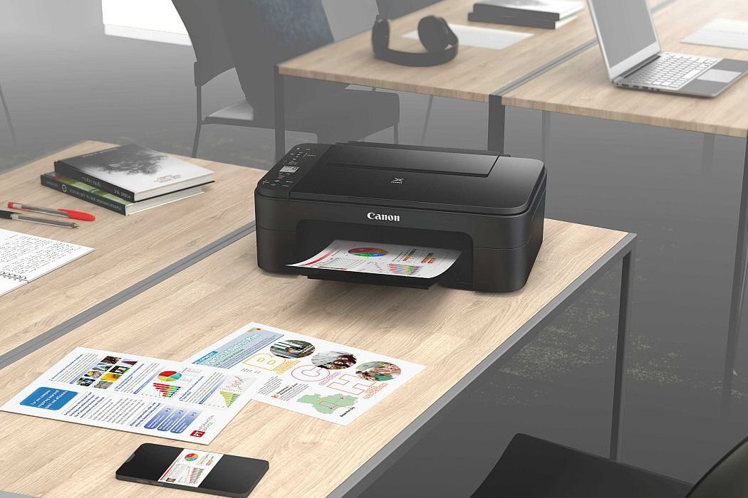 Kompaktowe, niedrogie i wszechstronne drukarki z serii Pixma TS3355 zapewniają bezproblemową łączność bezprzewodową i łatwy w obsłudze 1,5-calowy monochromatyczny ekran LCD. Obsługują kasety FINE z opcjami XL dla wyraźnych dokumentów i żywych zdjęć bez ramek do 5 × 7 cali.