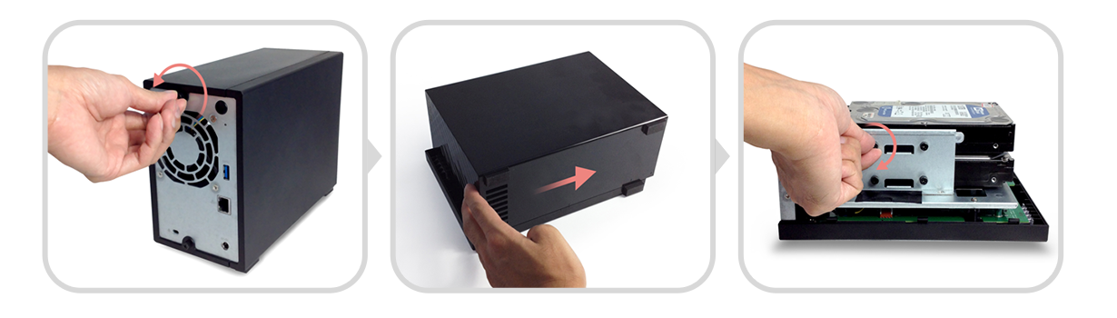 | Montaż bez użycia śrubokręta Serwery ASUSTOR serii AS32 to również wyjątkowo łatwy montaż bez użycia narzędzi. Wystarczą palce.