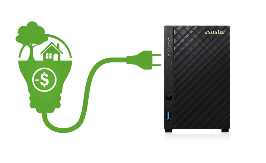 | Energooszczędność Seria AS32 została stworzona z myślą o ekologii i energooszczędności. W trakcie działania serwer pobiera znacznie mniej energii niż zwykły komputer. Dodatkowo można sterować pracą serwera NAS aby oszczędzać energię w trakcie kiedy serwer nie jest używany. W trakcie hibernacji dysków serwer pobiera jedynie 7,47W, a w trakcie normalnej pracy 13,7W.