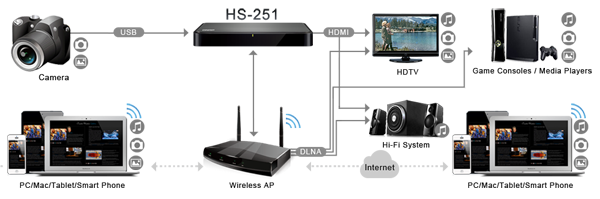 - Strumieniowanie filmów HD i rodzinnych nagrań wideo na różne odtwarzacze sieciowe
