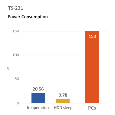Wyposażony w mocny, a mimo to energooszczędny dwurdzeniowy procesor Freescale™ ARM Cortex-A9 1,2 GHz, model TS-231 jest wysokowydajnym domowym urządzeniem NAS oferującym doskonałe parametry: prędkość odczytu do 110 MB/s i prędkość zapisu do 80 MB/s. Oferowany przez TS-231 mechanizm szyfrowania i deszyfrowania zapewnia prędkość transferu powyżej 30 MB/s; rozwiązanie umożliwia też szyfrowanie całego wolumenu NAS 256-bitowym szyfrem AES, co razem podnosi wydajność i jednocześnie zapewnia bezpieczeństwo poufnych danych prywatnych przechowywanych na TS-231. Użytkownik może też używać modelu TS-231 jako domowego multimedialnego koncentratora: zdjęcia, pliki muzyczne i wideo można oglądać i odtwarzać w czasie wykonywania zadań pobierania lub backupu plików i nie wpływa to na wydajność działania TS-231. W przypadku instalacji najnowszej karty sieciowej 802.11ac lub dwupasmowej karty Wi-Fi USB 2,4 GHz / 5 GHz 802.11n, model TS-231 jest w stanie oferować niezwykle wysokie prędkości przesyłania dużych plików oraz strumieniowania multimediów wymagających dużej szerokości pasma.