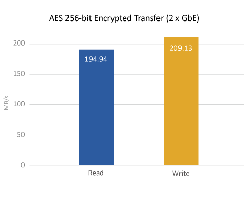 Oprócz tego model TS-251A obsługuje wspomagane sprzętowo szyfrowanie AES-NI opracowane przez firmę Intel®, które zapewnia przepływność na poziomie 209.13 MB/s przy szyfrowaniu AES-NI zarówno dla woluminu, jak i wybranych udziałów sieciowych, zwiększając wydajność oraz bezpieczeństwo systemu i poufnych danych biznesowych przechowywanych na serwerze NAS.