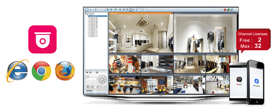 Aplikacja Surveillance Station to profesjonalny system zarządzania nagraniami wideo (VMS) do monitoringu sieciowego z łatwym w obsłudze interfejsem zarządzania, obsługą ponad 3000 modeli kamer IP, a także możliwością dokupowania licencji na dodatkowe kanały kamer. Obsługuje monitorowanie w czasie rzeczywistym oraz rejestrowanie i odtwarzanie sygnału wideo i audio przy użyciu wielu ustawień do wyboru. Na urządzeniach z systemem iOS® lub Android™ można też zainstalować aplikację Vmobile do zarządzania monitoringiem z kamer w dowolnym miejscu i chwili, aby chronić środowisko biurowe. Po zainstalowaniu aplikacji mobilnej Vcam można zmienić urządzenie w kamerę sieciową i bezpośrednio nagrywać wideo na serwerze TS-251A. Serwer TS-251A oferuje 2 bezpłatne kanały kamer IP. Liczbę kanałów można zwiększyć do 32, dokupując dodatkowe licencje.