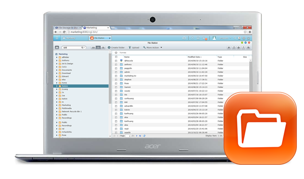 Udostępnianie plików między różnymi platformami, scentralizowany magazyn danych Model TS-431+ obsługuje protokoły SMB/CIFS, NFS i AFP, przez co umożliwia udostępnianie plików w systemach Windows, Mac oraz Linux/UNIX. Dane, logi i obrazy ISO płyt CD i DVD można centralnie przechowywać w TS-431+, gdzie są one chronione zintegrowanym rozwiązaniem antywirusowym. |