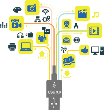 | Wyższa wydajność pracy dzięki wielu portom USB 3.0 Dzięki zastosowaniu trzech portów SuperSpeed USB 3.0, model TS-431+ pozwala elastycznie organizować zadania na różnych urządzeniach zewnętrznych bez zakłócania zadań wykonywanych na bieżąco. Użytkownik może wykonywać kopie zapasowe plików na napędy USB, ma dostęp do danych przechowywanych na kartach SD za pośrednictwem czytników kart USB, może udostępniać przez sieć do 3 drukarek i może się połączyć z zasilaczem UPS w celu zapewnienia ciągłości zasilania. |