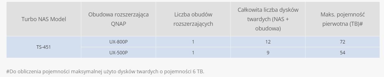 Maksymalna pierwotna pojemność nośników dostępna dzięki przyłączeniu obudowy rozszerzającej QNAP: