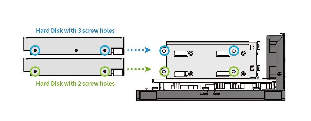Seria serwerów NAS AS10 v2 ma zaktualizowaną wewnętrzną konstrukcję kieszeni dysków twardych, które są w pełni kompatybilna z dyskami twardymi o wielkości 31 ". Ponadto urządzenie w pełni obsługuje dyski twarde o dużej pojemności (np. 12TB i powyżej) co skutecznie zwiększa elastyczność dla tych użytkowników, którzy chcą budować swoje własne prywatne chmury.