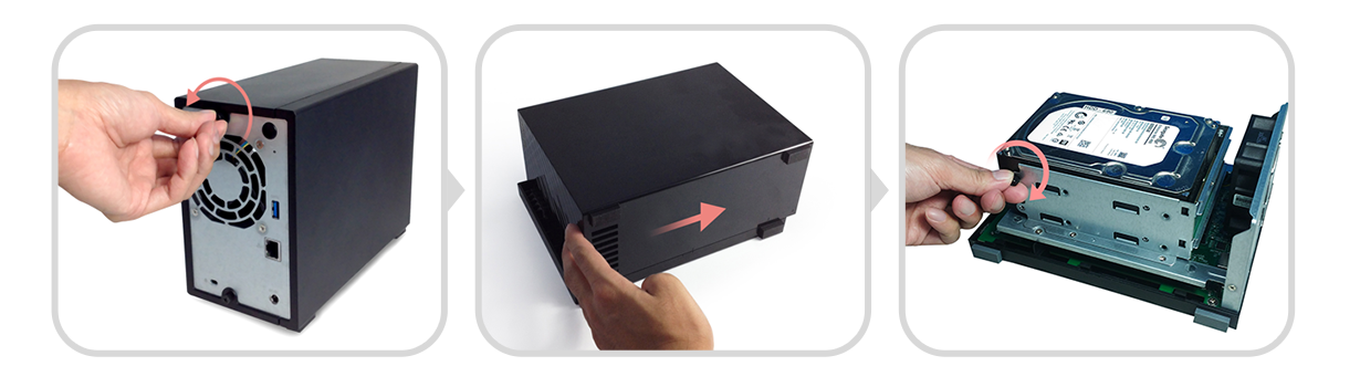 Konstrukcja wysuwanej zewnętrznej pokrywy urządzeń ASUSTOR serii, umożliwia wygodę jej zdejmowania, kiedykolwiek jest to konieczne. Zarówno obie wewnętrzne kieszenie na dysk oraz zewnętrzna pokrywa wykorzystują śruby motylkowe, które w prosty sposób można odkręcić oraz przykręcić bez potrzeby żadnych narzędzi.