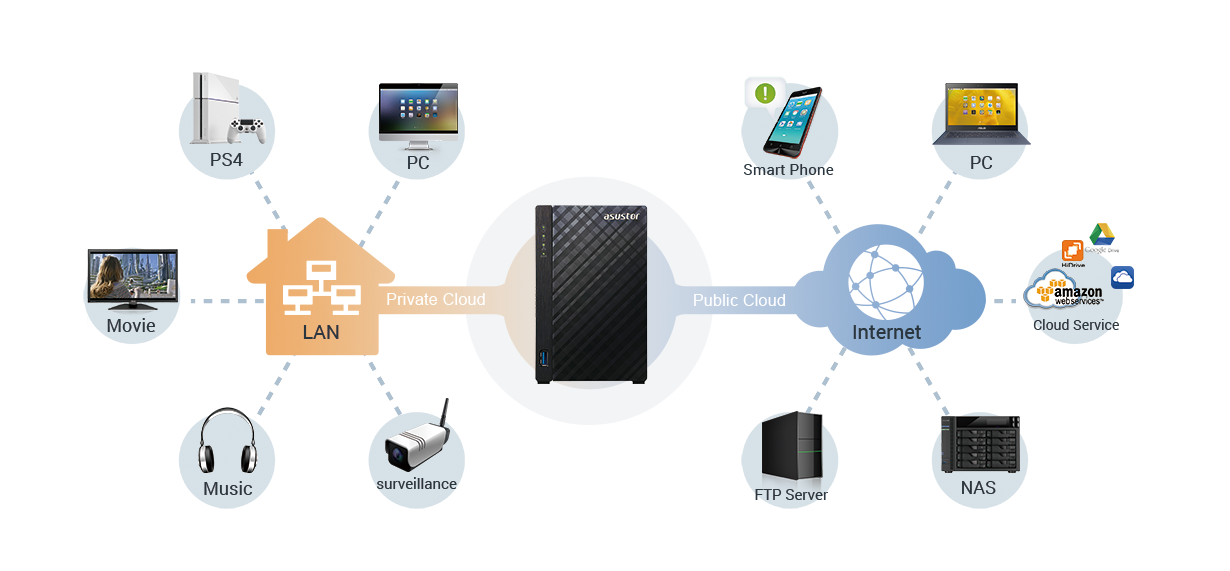 ASUSTOR NAS zapewnia swobodny dostęp pomiędzy różnymi platformami i wieloma użytkownikami, umożliwiając łatwe łączenie się z serwerem NAS korzystając z urządzeń posiadających system operacyjny Windows, Mac OS X lub system operacyjny podobnych do systemu Unix, bez względu na to, czy mówimy tu o komputerze stacjonarnym, notebooku, tablecie czy smartfonie.