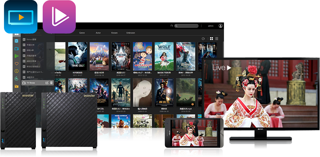 Aplikacja ”LooksGood” pozwala Tobie przeglądać wszystkie treści multimedialne na urządzeniach ASUSTOR NAS, tworząc dedykowaną multimedialną bazę danych. Co więcej, możesz też zaplanować cyfrowe nagrania telewizyjne, dzięki czemu nigdy więcej nie przegapisz swoich ulubionych programów TV. Skorzystaj z aplikacji AiVideos [do darmowego pobrania z App Store lub Google Store], aby wygodnie przeglądać kolekcję wideo na swoim serwerze NAS. Nigdy więcej czekania na zakończenie pobierania! Wystarczy tylko wybrać żądany plik wideo, aby rozpocząć jego strumieniowanie w rozdzielczości 1080p na urządzeniach mobilnych!