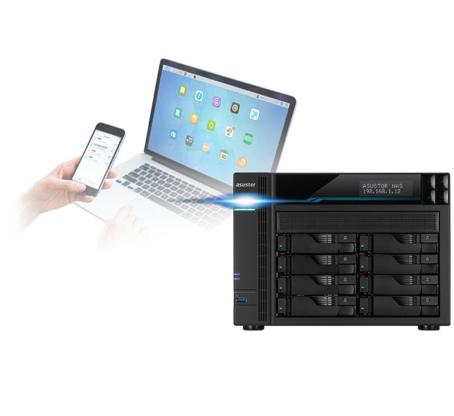 ASUSTOR NAS zapewnia swobodny dostęp pomiędzy różnymi platformami i wieloma użytkownikami, umożliwiając łatwe łączenie się z serwerem NAS korzystając z urządzeń posiadających system operacyjny Windows, Mac OS X lub system operacyjny podobny do systemu Unix, bez względu na to, czy mówimy tu o komputerze stacjonarnym, notebooku, tablecie czy smartfonie.