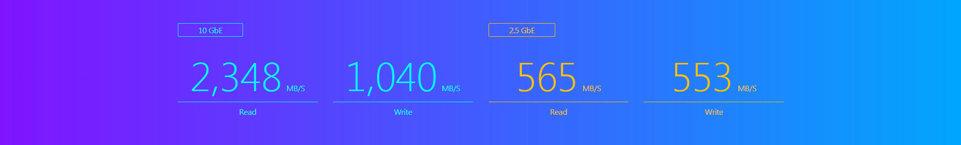 Zupełnie nowa seria serwerów NAS – Lockerstor – wyposażona jest w 2 porty RJ-45 10G Ethernet od Intel, jak również w 2 kolejne porty RJ-45 2.5G Ethernet od Realtek. Przy wykorzystaniu odpowiedniego, zarządzalnego przełącznika obsługującego agregację łączy uzyskać możemy prędkość do 20Gbps (porty 10G) lub do 5Gbps (porty 2.5G).