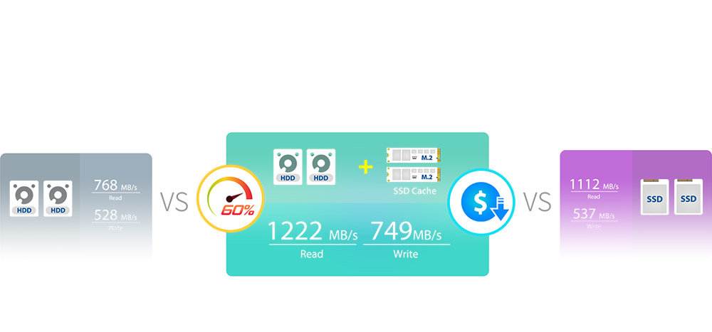Najnowsza wersja systemu operacyjnego ADM zawiera zaktualizowane jądro Linuksa oraz dodatkowe ulepszenia wydajności. Seria urządzeń Lockerstor oferuje pamięć podręczną SSD M.2 PCIe / NVMe, co jest gwarantem jeszcze szybszego działania serwera NAS.