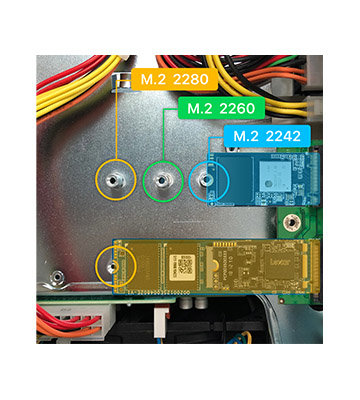 | Zwykłe, malutkie śrubki dedykowane do tych dysków są nieporęczne. | Śrubki Beznarzędziowe są prostsze w obsłudze i nie potrzeba do nich śrubokrętu z magnetycznymi bitami. | Dwa gniazda M.2 obsługują nośniki SSD NVMe oraz AHCI (2280, 2260 i 2242). |