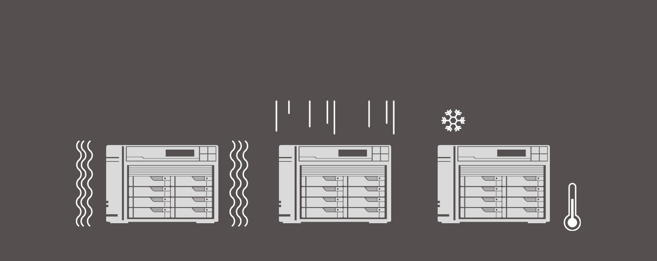 Wszystkie serwery NAS ASUSTOR zostały zaprojektowane z myślą o ciągłym działaniu 24/7. Każdy produkt tej marki przeszedł rygorystyczne testy stabilności działania podczas np.: upuszczenia z wysokości czy testy wytrzymałości podczas działania w ekstremalnych warunkach otoczenia. Aby chronić najbardziej wrażliwe komponenty producent zamontował wentylatory, aby lepiej rozpraszać ciepło i jednocześnie przedłużając żywotność samego serwera NAS.