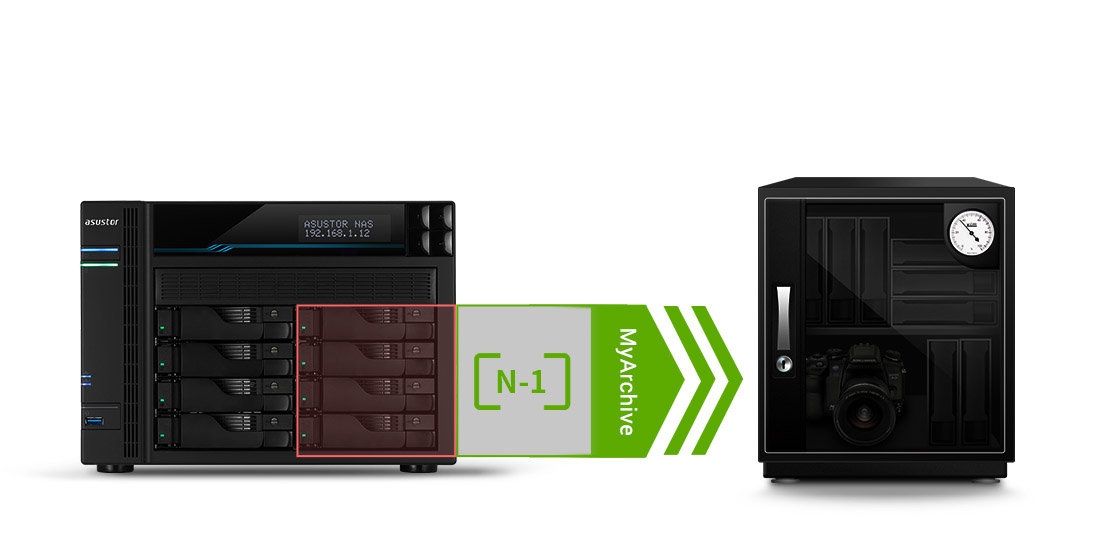 Zaawansowana technologia tworzenia kopii zapasowej ”Cold Backup” aplikacji MyArchive zamienia standardowe dyski twarde kompatybilne z serwerami NAS w mobilne archiwa pamięci masowej. Wystarczy tylko włożyć dysk twardy do serwera NAS w celu łatwego dostępu, tworzenia kopii zapasowych oraz udostępniania innym zawartości zainstalowanych pamięci masowych. Aplikacja obsługuje wyjmowanie i instalację nowych jednostek pamięci masowej ”na gorąco” - funkcja Hot Swap.