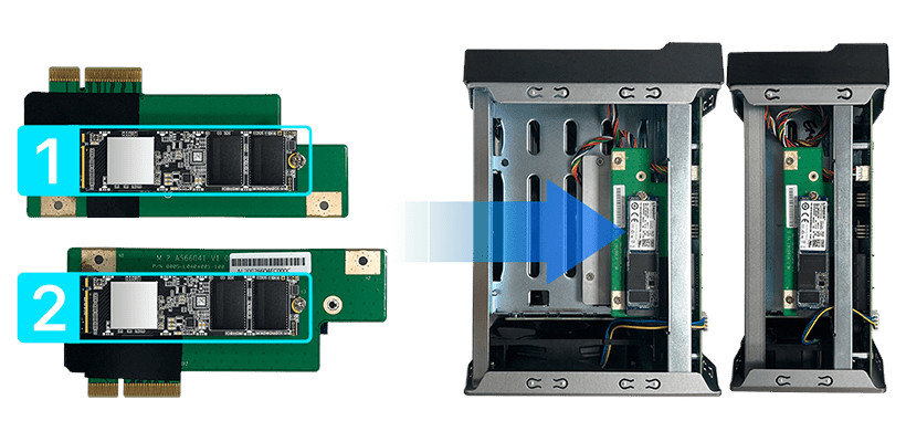 Połączenie dwóch zatok HDD oraz dwóch slotów M.2 SSD Duża pojemność oraz wydajna pamięć podręczna