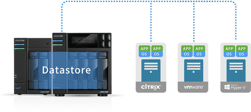 | Wirtualny magazyn danych (Virtual Storage)ASUSTOR NAS dostarcza sprzęt i oprogramowanie klasy Enterprise i jest kompatybilny |