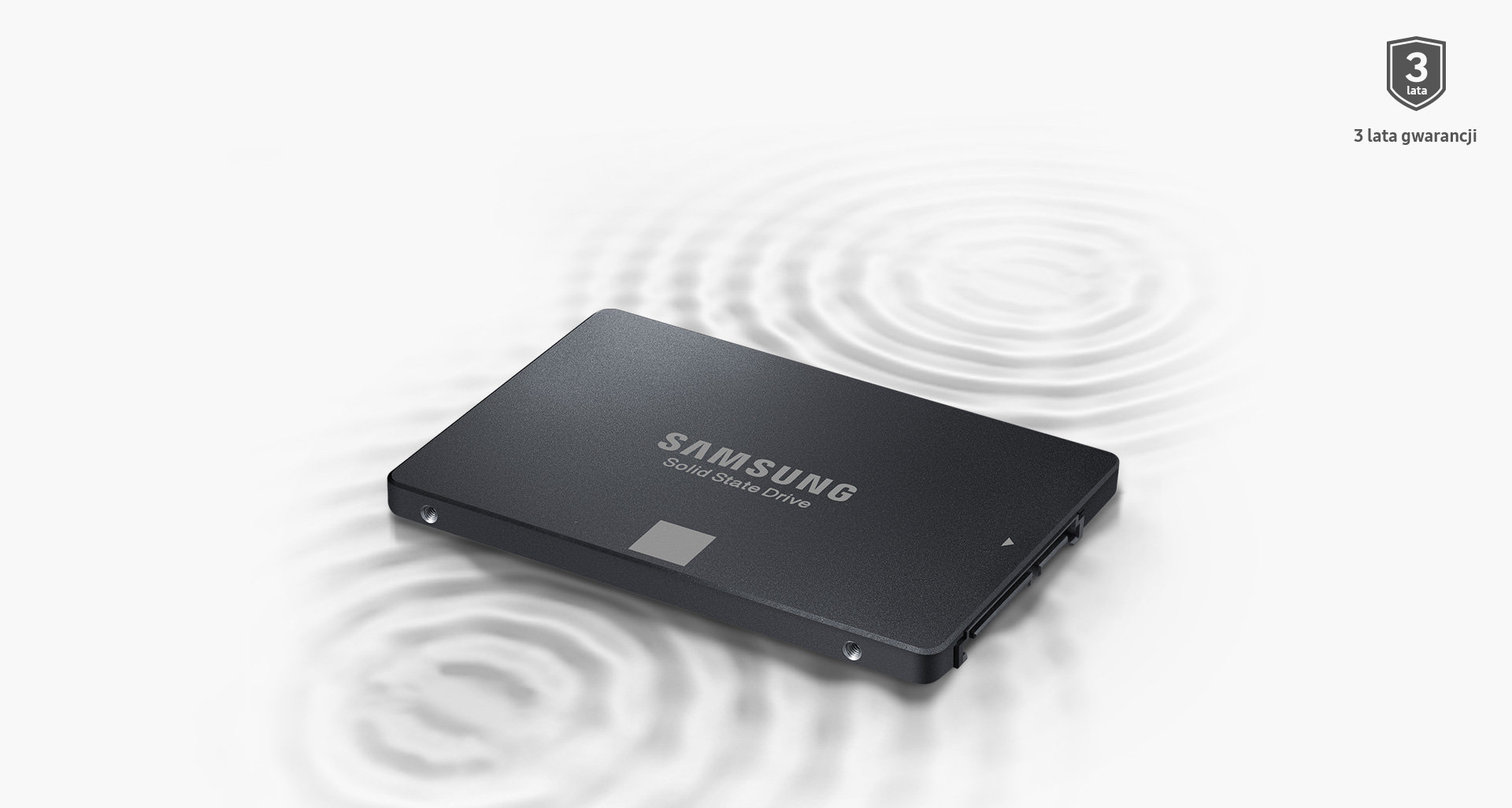 W przeciwieństwie do dysków HDD, dysk 750 EVO SSD nie ma ruchomych części, co oznacza niemal całkowitą odporność na wstrząsy i wibracje. Objęty został również gwarancją do trzech lat lub do zapisania 100 terabajtów danych (TBW).