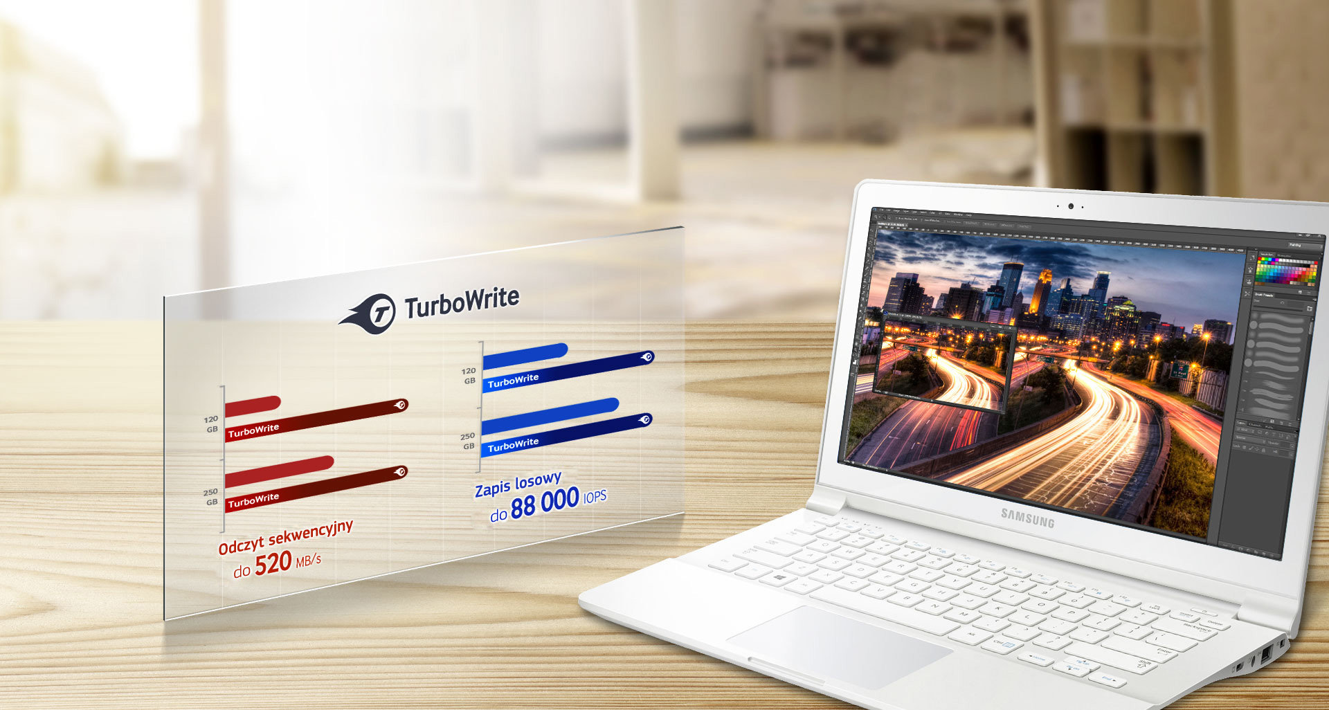 Optymalizuj zadania wykonywane na komputerze dzięki technologii TurboWrite Uzyskaj niezrównane parametry odczytu / zapisu, aby usprawnić codzienne czynności wykonywane na komputerze dzięki technologii Samsung TurboWrite. W porównaniu do 840 EVO dysk 850 EVO zapewnia lepszą o 13%* odczuwalną przez użytkownika prędkość działania, także dzięki 2 razy szybszemu zapisowi losowemu**. Dysk 850 EVO zapewnia najlepsze parametry w swojej klasie dzięki prędkości sekwencyjnego odczytu i zapisu wynoszącymi odpowiednio 540 MB/s i 520 MB/s. Korzystaj z optymalnych parametrów wykonywania zadań losowych dla wszystkich scenariuszy głębokości kolejki w użyciu komputera klienckiego. |