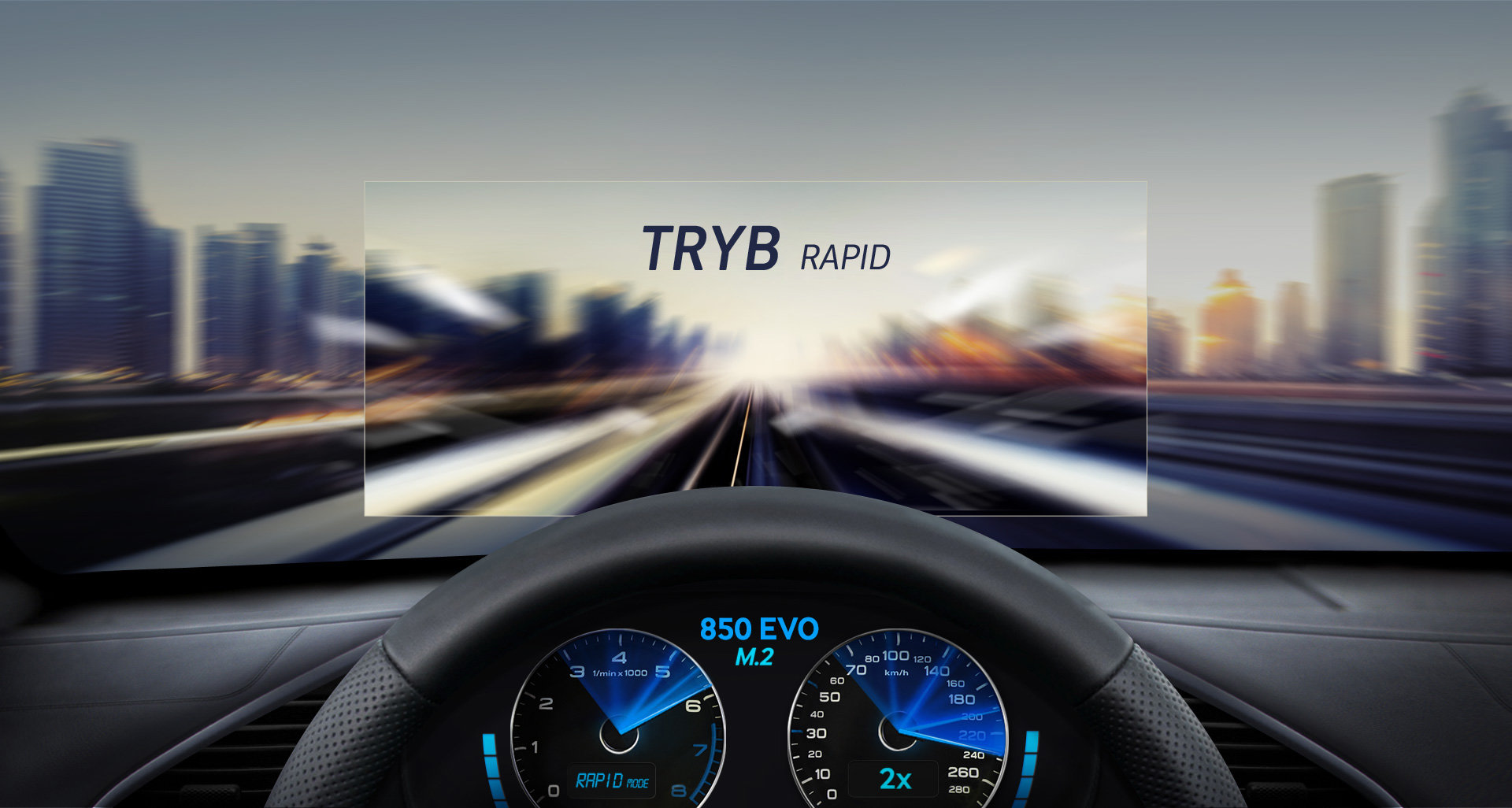 | Zwiększ objętość pamięci w trybie RAPID Samsung 850 EVO M.2 to urządzenie stworzone z myślą o szybkości. Najnowsze oprogramowanie Samsung Magician umożliwia uruchomienie trybu RAPID, który wykorzystuje nieużywaną pamięć komputera (DRAM) jako pamięć cache, aż do 25% całkowitej ilości pamięci DRAM. Dzięki znaczącemu zwiększeniu ilości pamięci, prędkość przetwarzania danych oraz obsługa kolejki zadań losowych w trybie RAPID mogą być 2 razy szybsze*. |