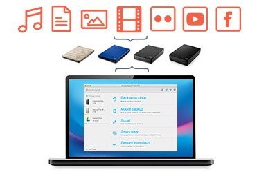Twórz kopie zapasowe wszystkich zdjęć i filmów za pomocą programu Seagate Dashboard – także tych, które udostępniasz w serwisach Facebook, Flickr i YouTube.