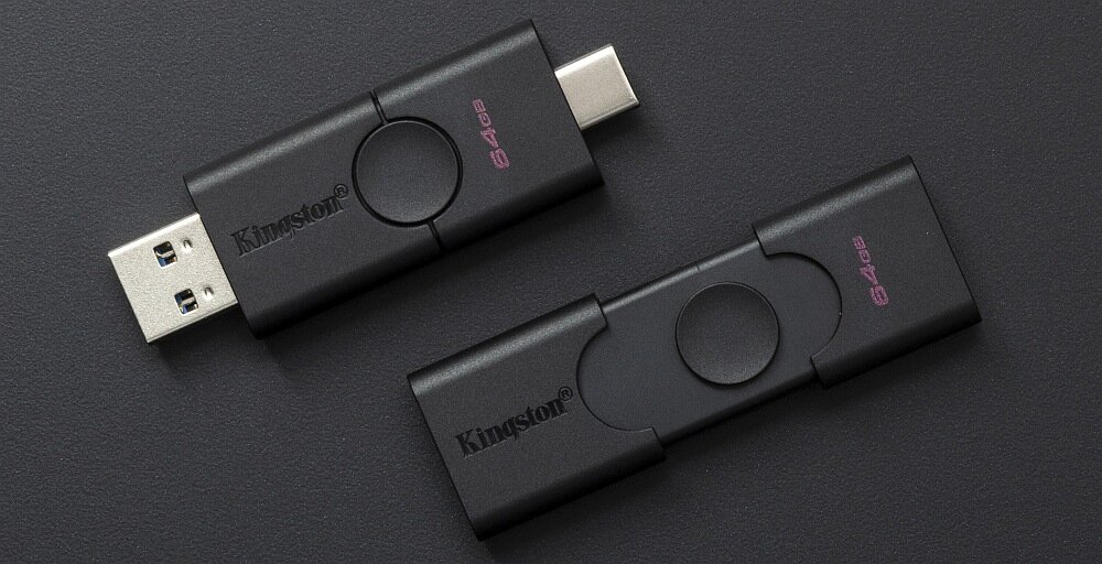 Pamięć DataTraveler Duo firmy Kingston jest wyposażona w dwa złącza USB, które umożliwiają podłączenie zarówno do standardowych portów USB Type A, jak i portów USB Type-C.