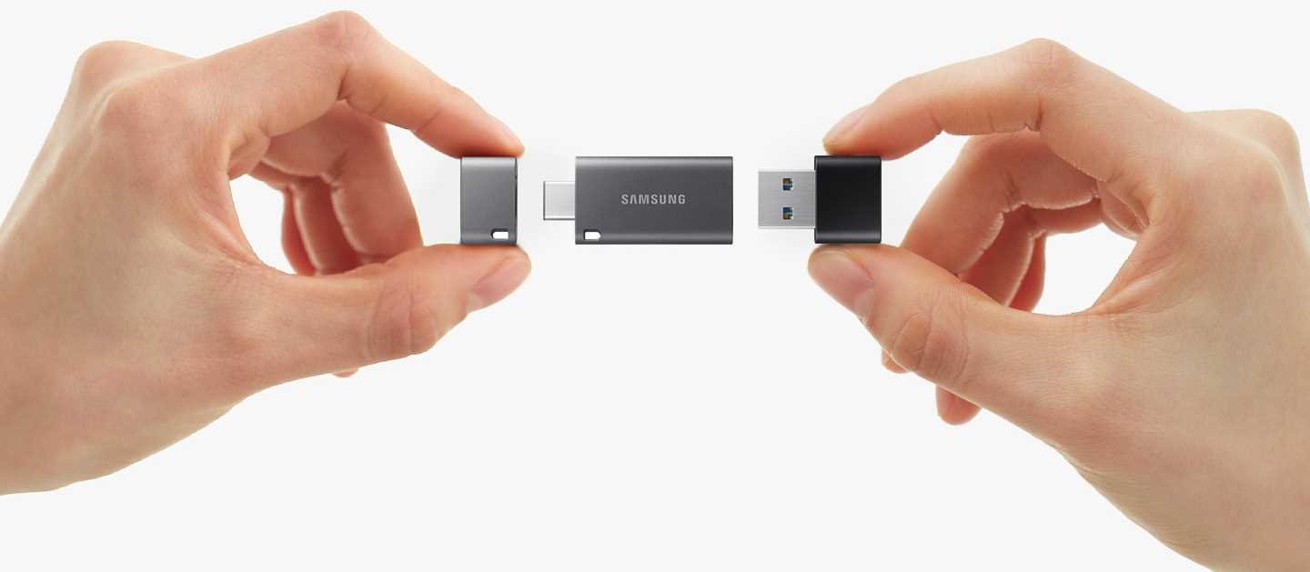 - Pendrive SAMSUNG Duo Plus 32GB, USB-C / USB 3.2 Gen. 1 (USB 3.0), Odczyt 200 Mb/s