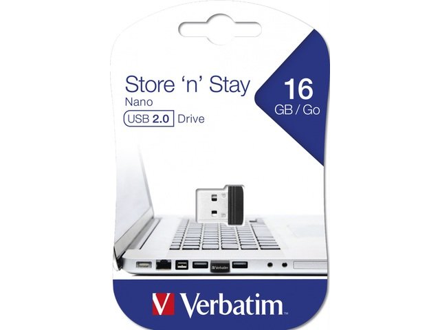 Pendrive VERBATIM Store ‘n’ Stay Nano 16GB, USB 2.0, Odczyt 10 Mb/s, Zapis 3 Mb/s Czarny