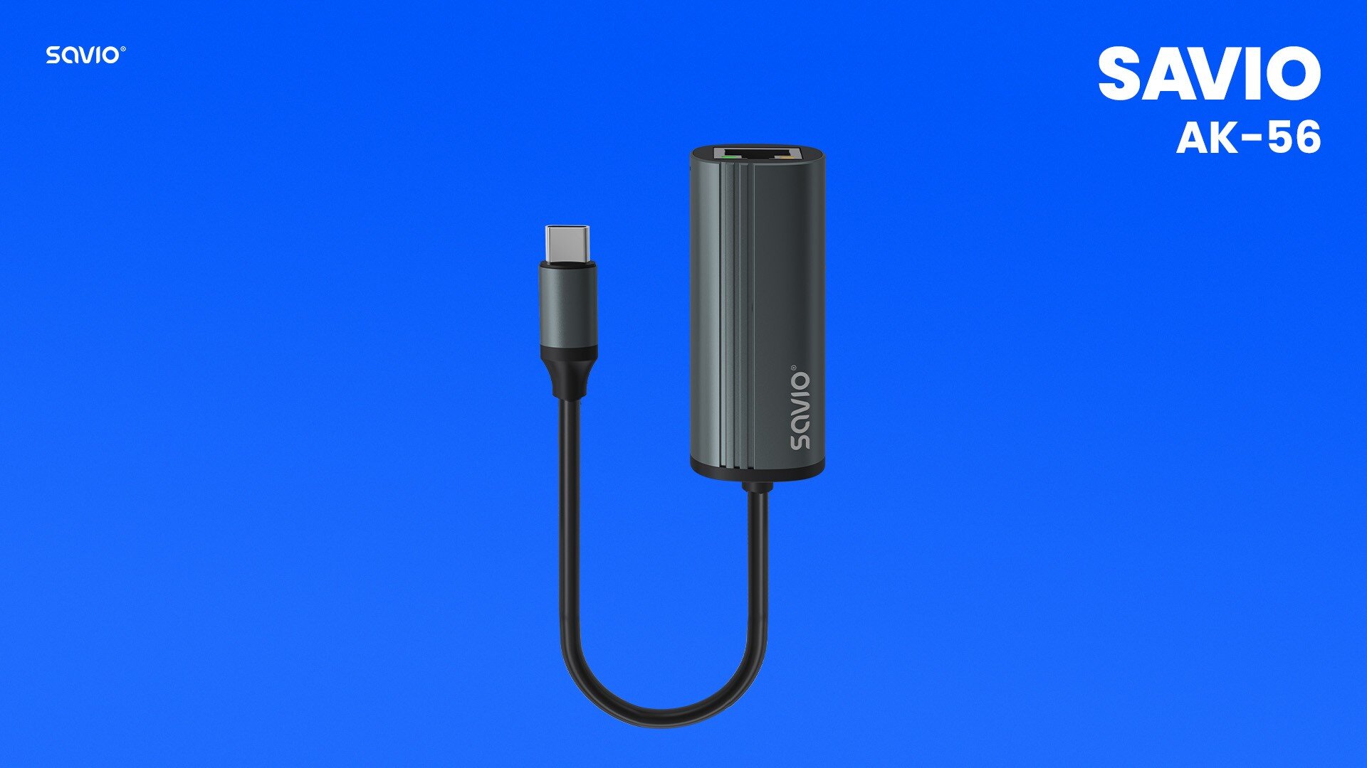 Adapter SAVIO AK-56 to idealne rozwiązanie dla laptopów i PC, które zapewnia stabilne i szybkie połączenie z Internetem z prędkością do 1000 Mbps. W urządzeniu zastosowano uniwersalne złącze USB-C 3.1 Gen 1. oraz żeńskie gniazdo RJ-45 Gigabit Ethernet.