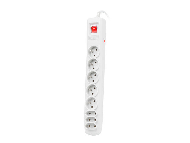 Listwę wyposażono w 5 gniazd z uziemieniem, 3 gniazda płaskie bez styku ochronnego, automatyczny bezpiecznik oraz przełącznik pracy ze światłem sygnalizacyjnym. Nieprzewodząca obudowa oraz łatwy montaż do podłoża lub ściany zapewniają wygodne i bezpieczne użytkowanie.