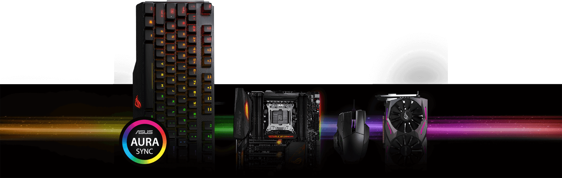 ROG daje Ci ekskluzywne opcje synchronizacji Aury, z dodatkowymi możliwościami jeżeli sparujesz swoją klawiaturę ROG Claymore z płytą główną ROG, kartą graficzną ROG itd. Skróty klawiszowe pozwalają na kontrolowanie prędkości wentylatora płyty głównej ASUS i przetaktowywanie systemu.