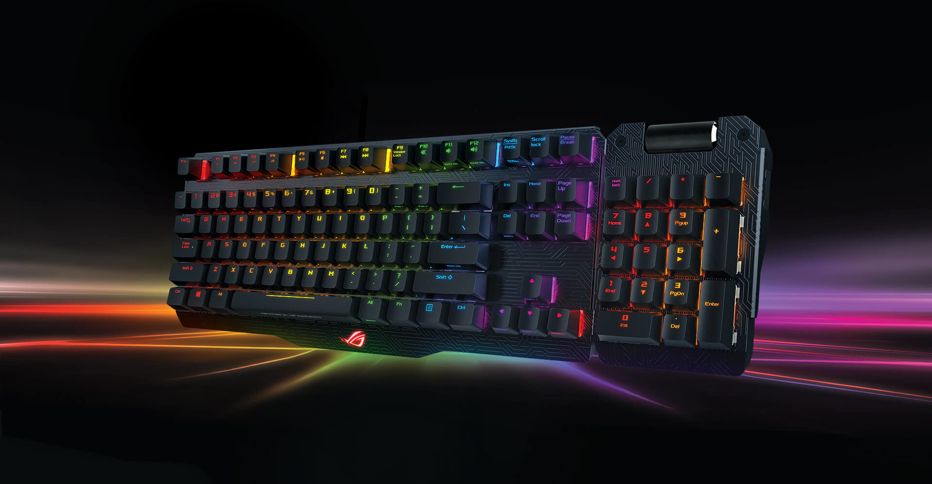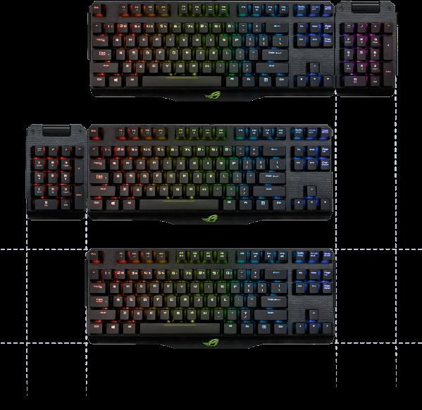 ROG Claymore to pierwsza na świecie klawiatura mechaniczna RGB do gier z odłączaną klawiaturą numeryczną zapewnia elastyczne opcje lokalizacji podczas gry. Przełącznik Cherry MX RGB zapewnia dokładne i elastyczne wciskanie klawiszy praz indywidualne programowanie podświetlenia klawiszy dzięki technologii Aura Sync RGB LED, umożliwiając niezrównany poziom personalizacji.. Klawiatura ta, oprócz stuprocentowej technologi anti-ghosting, wyposażona jest również w technologię N-key rollover, rejestrator makr, a także skróty klawiszowe dedykowane chłodzeniu płyty głównej i kontrolki przetaktowywania. ROG Claymore to Twój klucz do sukcesu w każdej cyfrowej bitwie.