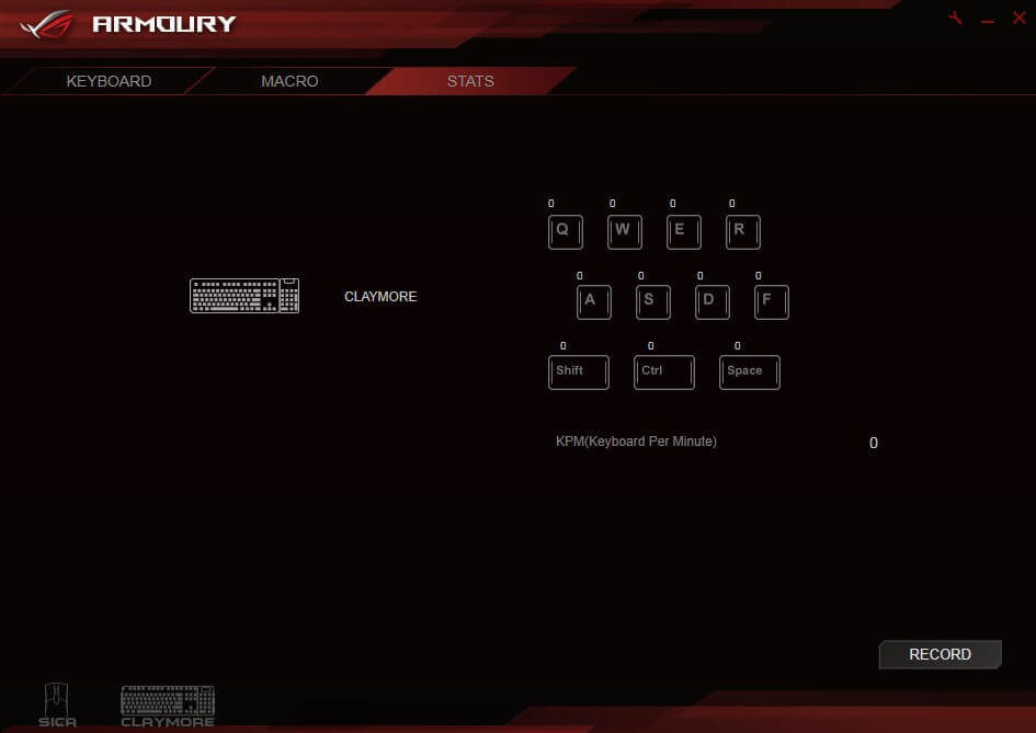 Dzięki wbudowanej pamięci klawiatury ROG Claymore możesz na bieżąco zapisywać do sześciu profili użytkownika (5 spersonalizowanych i 1 standardowy). Intuicyjne oprogramowanie ROG Armoury pozwala Ci na personalizowanie ustawień klawiszy, oświetlenia i makr. Możesz nawet śledzić dane statystyczne, takie jak ilość przyciśnięć klawiszy w czasie gry.