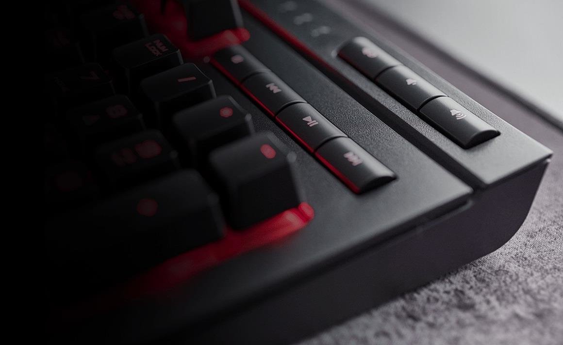 Przy użyciu specjalnych elementów sterujących głośnością i multimediami możesz regulować dźwięk na bieżąco bez zakłócania gry. W trybie blokady klawisza Windows przypadkowe naciśnięcia klawisza Windows i menu kontekstowego nie zakłóci Ci koncentracji.