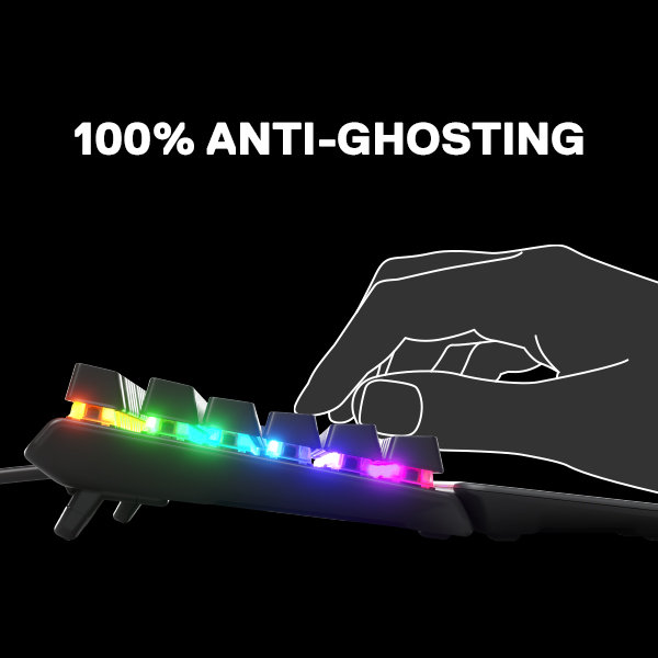Przyciski sterowania multimediamiKlikalna metalowa rolka i przyciski multimediów do szybkiej regulacji głośności i ustawień: zmieniaj jasność, przewijaj, pomijaj, zatrzymuj itp. – wszystko to za jednym dotknięciem przycisku. | Port USB i okablowaniePoduszki AirWeave zostały wykonane z materiału używanego w odzieży dla sportowców. Zapewniają przyjemne uczucie chłodu, zaś odpowiednia cyrkulacja powietrza gwarantuje większy komfort - nawet w trakcie wielogodzinnych rozgrywek. | 100% Anti-Ghosting z 104 Key RolloverTa klawiatura nigdy nie pominie żadnego wcisniętego klawisza, nawet podczas najbardziej intensywnych rozgrywek. 100% anti-ghosting oznacza, że klawiatura rejestruje każdą akcję użytkownika, bez względu na szybkość reakcji. |