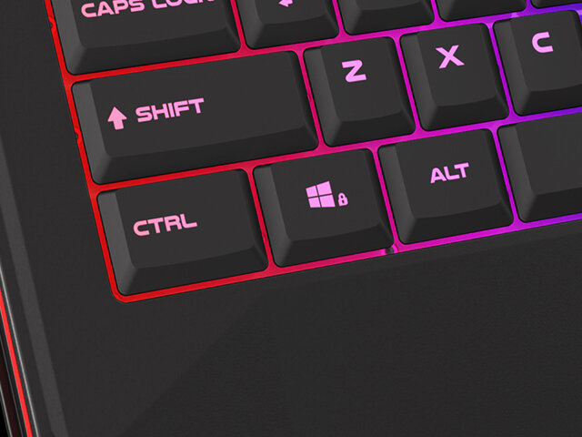 | BLOKADA KLAWISZA WINDOWSZ Lith 400 RGB zablokujesz przycisk Windows, co zapobiegnie przypadkowemu zminimalizowaniu gry. Graj komfortowo, bez przerwy i ze spokojem, ponieważ nigdy nie znikniesz w najważniejszych momentach rozgrywki. |