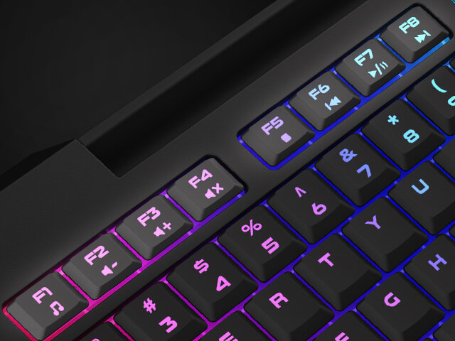 PEŁNA KONTROLA MULTIMEDIÓWDziałaj komfortowo w trakcie korzystania z multimediów. Przyciski funkcyjne rozmieszczone na klawiszach F1 - F12 ułatwiają sterowanie muzyką, filmami oraz pozwalają na błyskawiczne otwarcie aplikacji, takich jak poczta czy kalkulator. | |