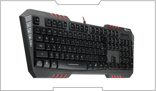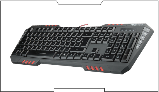 Ergonomiczny kształt klawiatury zapewnia komfort nawet w czasie wielogodzinnych rozgrywek. Nóżki na spodzie klawiatury umożliwiają bezproblemowe ustawienie odpowiedniego kąta nachylenia, a nowoczesny, gamingowy design i podświetlenie LED sprawiają, że urządzenie przyciąga wzrok.
