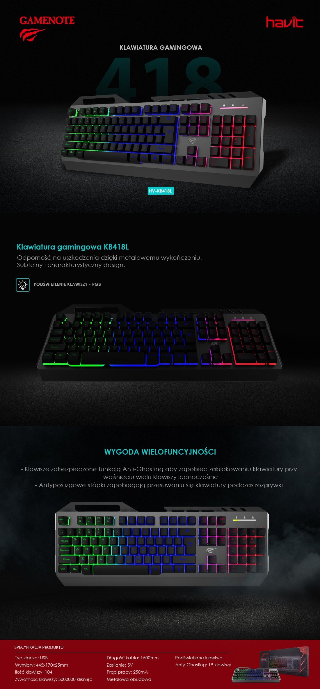Klawiatura HAVIT GAMENOTE HV-KB418L