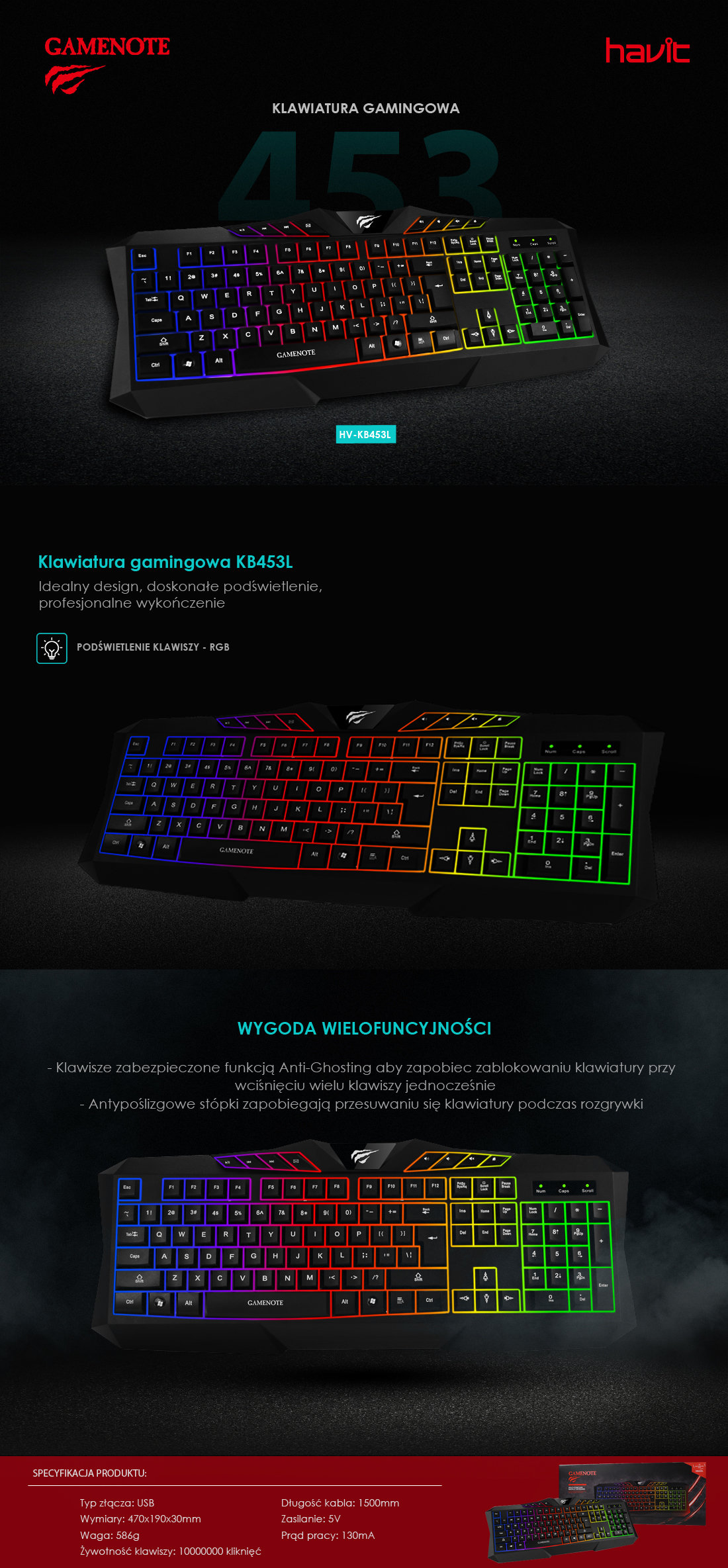 - Klawiatura HAVIT Gamenote HV-KB453L