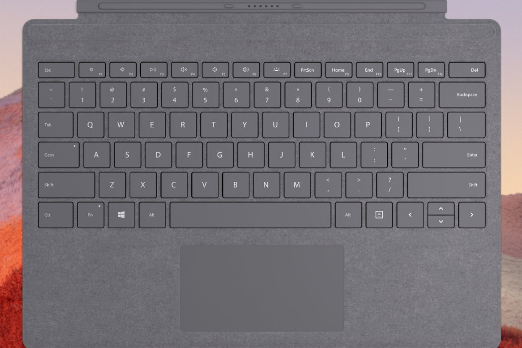Podłącz klawiaturę Surface Pro Signature Type Cover do Surface Pro 7, aby wygodnie pisać w dowolnym miejscu. Jest elegancka i kompaktowa, z podświetlanymi klawiszami i dużym touchpadem.