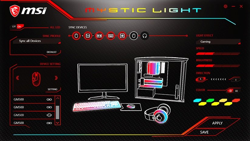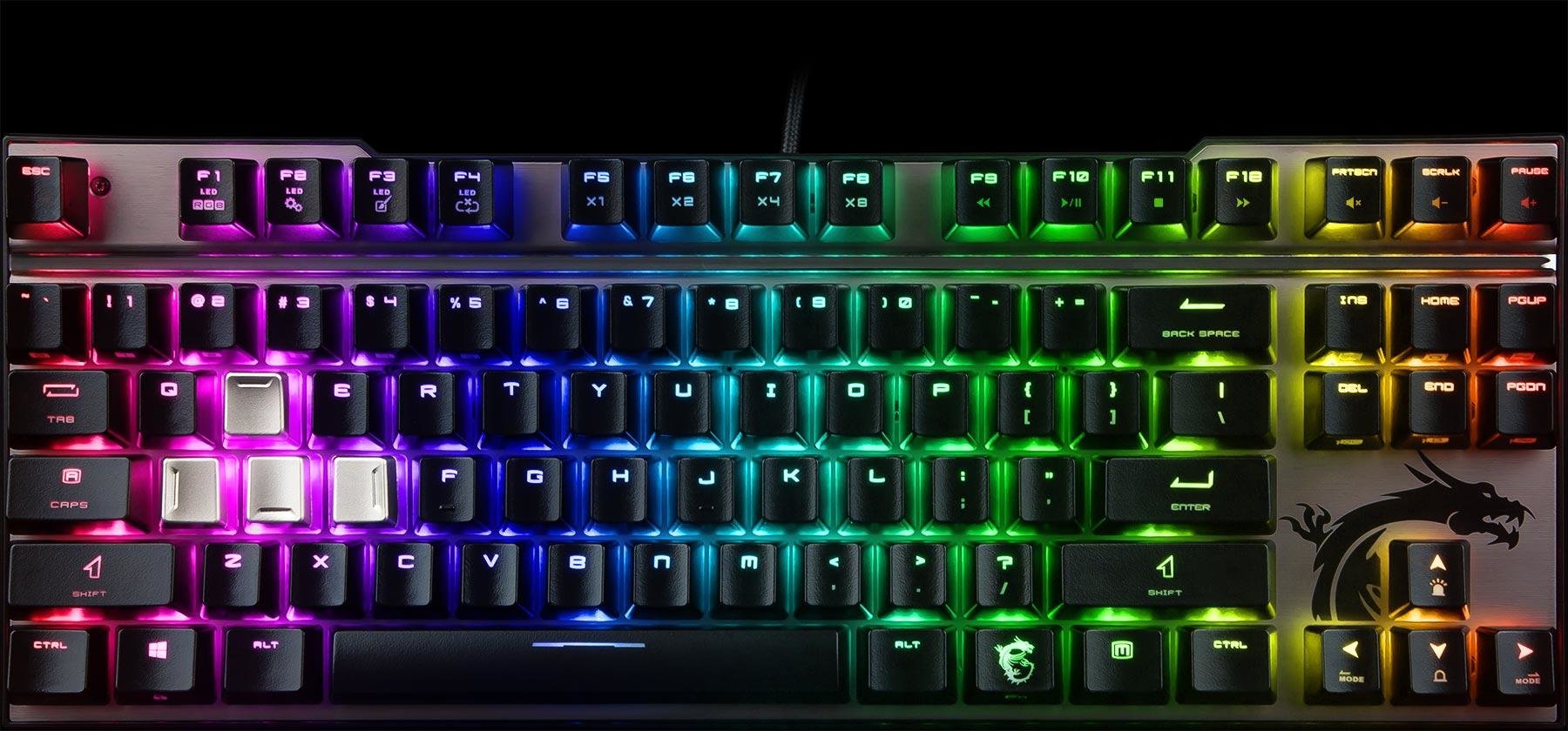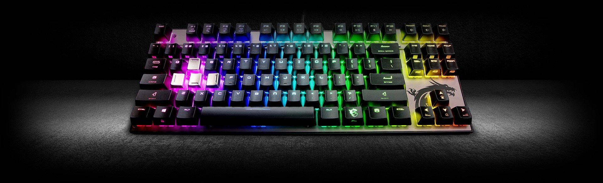 Gracze, korzystając z technologii RGB Light Mystic Light firmy MSI, mogą łatwo zmienić wygląd swojej klawiatury, wybierając barwy podświetlenia spośród milionów kolorów i wielu efektów animacji światła, aby dopasować ich ustawienia do własnego gustu lub nastroju. Bądź kreatywny, zmieniając indywidualnie kolor każdego klawisza . Korzystając z technologii Mystic Light Sync, kolory i efekty świetlne można łatwo zsynchronizować z innymi komponentami wyposażonymi w podświetlenie RGB i urządzeniami peryferyjnymi. W ten sposób uzyskasz oszałamiający wygląd sprzętu.