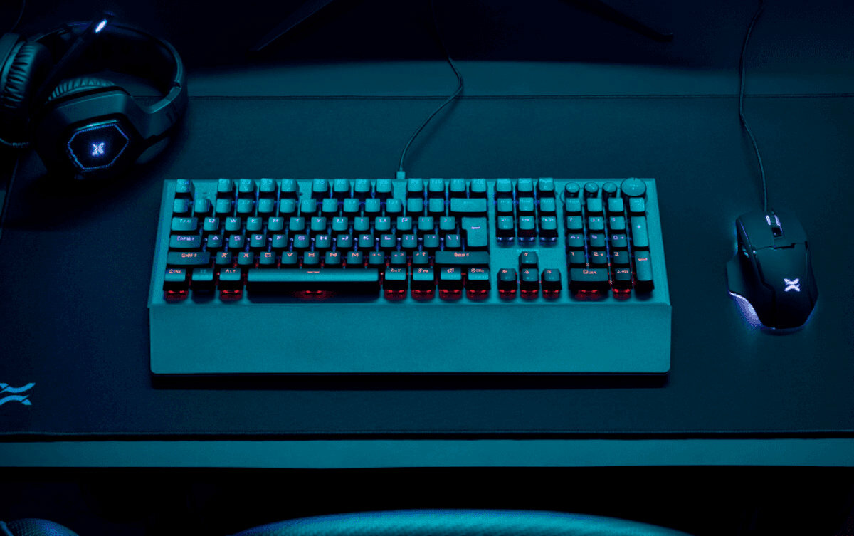 NOXO CONQUEROR GAMING posiada 104 klawisze podstawowe i 4 pokrętła cyfrowe, które w sposób inteligentny pozwolą Ci sterować programami multimedialnymi zainstalowanymi na komputerze. Całość wykonana jest z wysokiej jakości tworzywa sztucznego i metalu, dzięki czemu urządzenie jest solidne i odporne na wstrząsy.