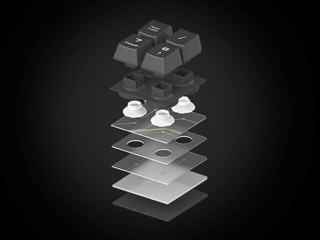 | FUNKCJONALNY MECHANIZMKlawiaturę wyposażono w niezwykle cichy i wydajny mechanizm membranowy, który cechuje się szybkim czasem reakcji – 8ms, niską siłą nacisku – 55 g i punktem aktywacji wynoszącym 2,5 mm. Takie parametry techniczne pozwolą Ci zawsze być o krok przed przeciwnikiem! |