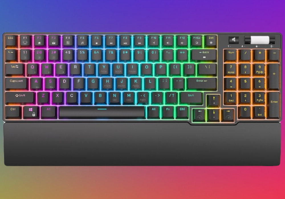 Model RK96 wyróżnia się layoutem na 96%, co sprawia, że zajmuje mniej miejsca na biurku, jednocześnie zachowując pełnowymiarowy układ klawiszy dla wygody pisania i obsługi.