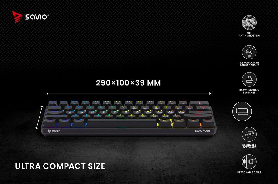 - Klawiatura SAVIO Blackout Outemu Brown