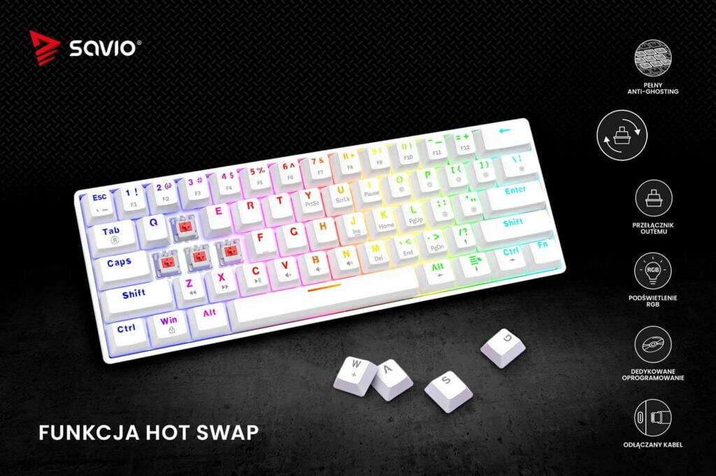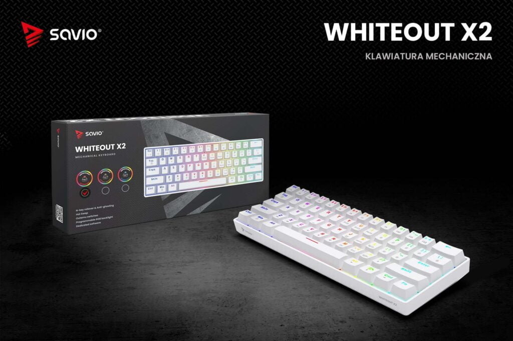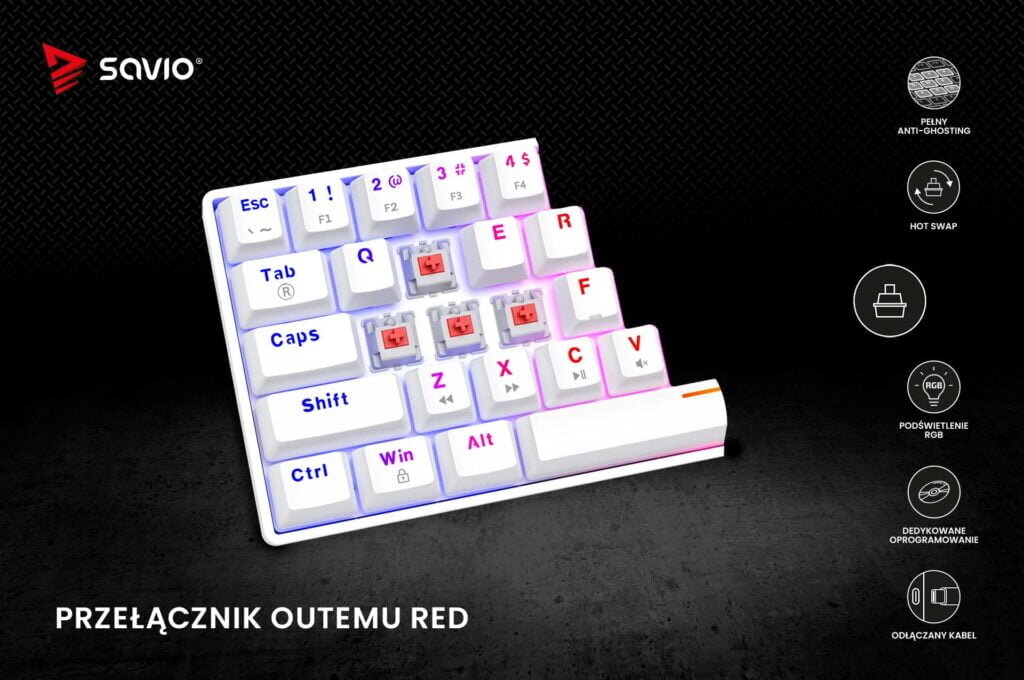 - Klawiatura SAVIO Whiteout X2 Outemu Red Hot Swap